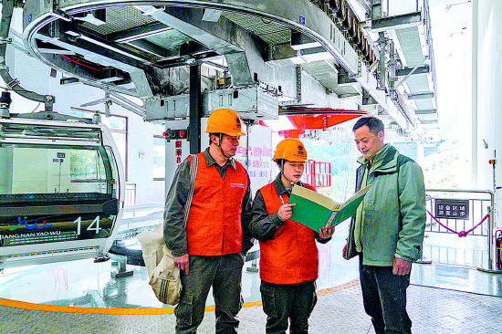 ▲ 近日,国网湖州供电公司共产党员服务队走进浙江省湖州市德清县莫干山江南瑶坞旅游度假区,对景区的配电设施和用电设备进行检查,并开展电力普法宣传活动。图为服务队队员向景区工作人员讲解安全用电知识。