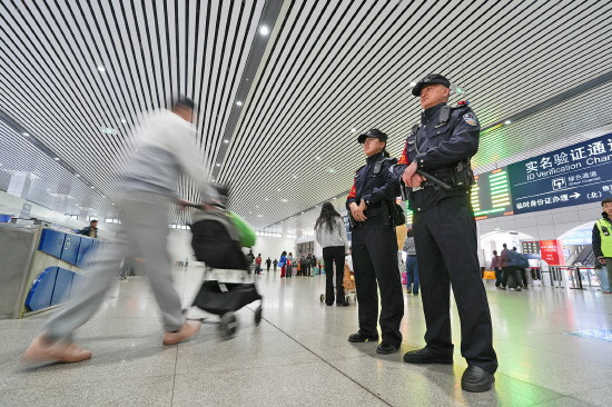 图① 2月2日,2026年春运拉开帷幕,昆明火车站铁路民警加强安检盯控、巡逻防控力度,在进站口、候车室、出站通道等人流密集区域加大值守力度,全力保障旅客安全出行。图为民警在进站口值守。 本报记者 常煜 本报通讯员 周银 摄
