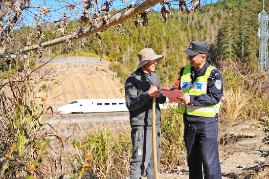 图② 自春运开始以来,南昌铁路公安局福州公安处民警始终坚守岗位,做好铁路线路安全宣传。图为2月2日,福州铁路公安处泰宁站派出所民警深入沿线村庄,开展铁路安全宣传活动。 本报记者 王莹 本报通讯员 元博勋 摄