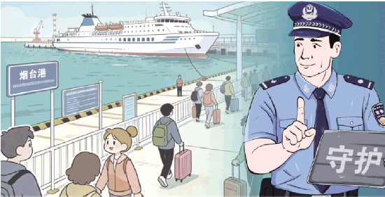 这一幕,是烟台港客运安保一线的日常情景。山东烟台至辽宁大连航线是我国海上客运量最大的航线之一,被称为“黄金水道”。作为“黄金水道”的护航者,烟台市公安局港航公安局创新弹性警务工作机制,做好人、车、货、船、港“五位一体”系统守护,及时化解乘客矛盾纠纷、回应乘客需求,全力筑牢北方海上客运航线的平安根基。