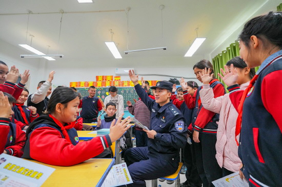 近日,乌鲁木齐铁路公安局哈密公安处罗中站派出所民警走进哈密市伊州区花园乡第一小学,开展寒假专题普法宣传活动。