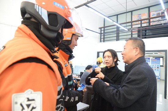 作为今年北京市通州区网约配送行业党委“副中心有我·京彩暖‘新’年”系列主题服务活动的一部分,北京市通州区市场监督管理局工作人员近日将12块音书字幕智能手表送到12名听障外卖配送员手中。佩戴智能手表的听障外卖员在接单时能即时收到震动提醒,语音实时转文字以及手语翻译功能解决了他们的接单痛点。图为收到智能手表的外卖员们通过手语老师与市场监管部门的工作人员交流。 本报记者 张雪泓 本报通讯员 裴新军 摄