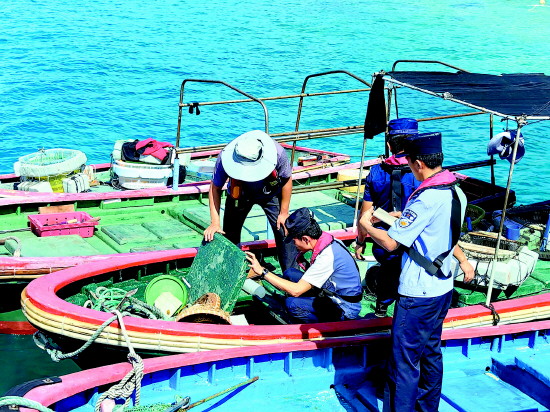 中午返回永兴岛,船管民警正在码头挨个检查靠泊渔船。近年来,派出所强化“三无”船舶清理整治,更新完善“一船一档”台账,完成辖区船舶北斗定位终端安装工作,实现“屏幕前守护出海渔民平安”。