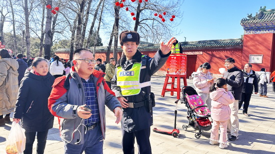 年味最浓处,警心守护时。地坛庙会游人如织,红墙黄瓦交映间,锣鼓声、欢笑声、叫卖声汇成一幅新春盛景。而在这喜庆背后、熙攘之中,总有一抹藏蓝身影穿梭往来、执着坚守,成为节日里最坚实的平安底色。
