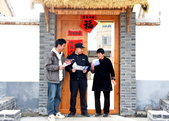 图③ 近日,安徽省涡阳县公安局组织民警走村入户,通过进家门、拉家常的方式,开展普法宣传,提升群众法治意识。图为民警向群众讲解预防电诈相关法律知识。
