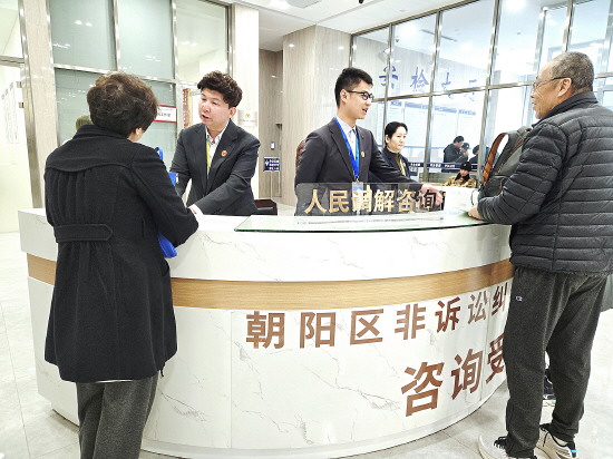 图为北京市朝阳区非诉讼纠纷化解中心工作人员正在接待咨询群众。