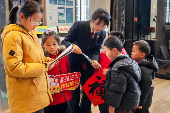 近日,江苏省南京市雨花台区人民检察院聚焦寒假安全教育,深入开展送法进校园、进社区活动,通过法律知识竞答、法治冬令营等多元形式,用专业和温度为孩子们送上“寒假安全指南”。图为检察官为孩子们讲解法律知识。 本报记者 罗莎莎 本报通讯员 李娜 摄
