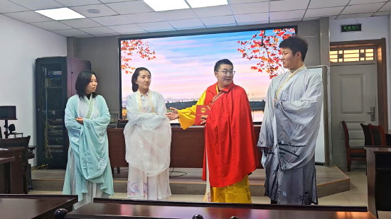 图为司法行政干警正在排演改编自“白蛇传”的普法小品。