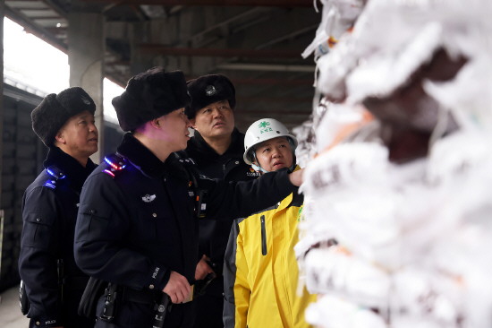 近日,乌鲁木齐铁路公安处乌鲁木齐北站派出所组织民警前往新疆农资集团北站仓储公司农资专用铁路线,开展专项检查。图为民警对春耕物资仓储安全开展专项检查。 本报记者 潘从武 本报通讯员 杨佳闻 摄