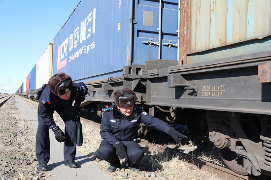 为保障中欧班列安全运行,派出所民警联合铁路部门,对班列行经线路全程巡防,及时消除各类安全隐患。