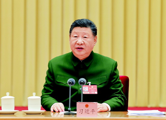 3月7日下午,中共中央总书记、国家主席、中央军委主席习近平出席十四届全国人大四次会议解放军和武警部队代表团全体会议并发表重要讲话。 新华社记者 李刚 摄