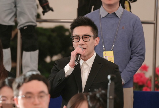 3月7日,全国政协十四届四次会议第二场“委员通道”集体采访活动在北京人民大会堂举行。图为本报记者提问。