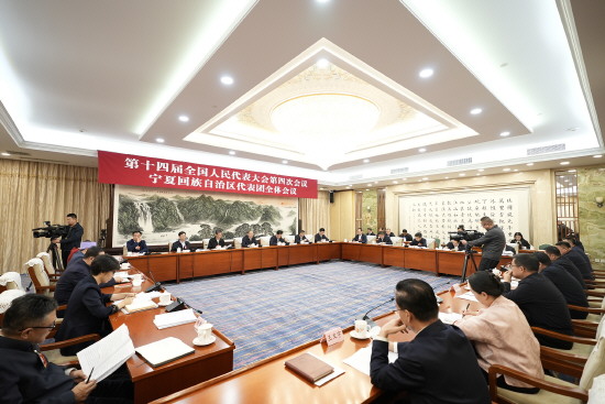 3月9日,十四届全国人大四次会议宁夏回族自治区代表团举行全体会议,审议全国人大常委会工作报告、全国人大常委会关于法律清理工作情况和有关法律和决定处理意见的报告。 本报记者 李唯祎 摄