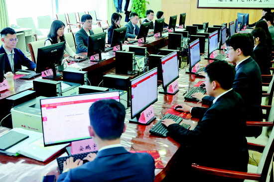 图② 3月10日,十四届全国人大四次会议秘书处议案组工作人员对收到的代表议案、建议进行分类分析。