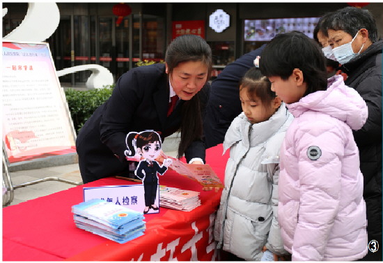 图③ 句容市人民检察院检察干警向参加活动的未成年人普及法律知识。