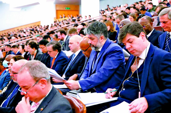 图为外国驻华使节旁听十四届全国人大四次会议。 新华社记者 刘彬 摄