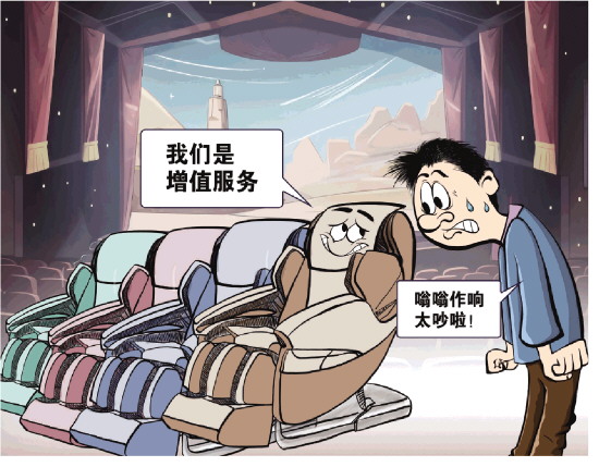 戴女士的遭遇并非个例。《法治日报》记者近日调查发现,如今有不少影院在影厅座椅上加装按摩设施。然而,这类按摩座椅大多与普通座椅混排,线上购票环节鲜有明确标注,消费者往往到现场才知晓座椅属性。观影过程中,按摩椅背的震动、嗡鸣,甚至自动开启的按摩功能,严重干扰观影体验,部分座椅因加装按摩仪还出现空间狭窄的问题。“本应是提升体验的增值服务,如今却成了观影过程中的‘闹心’服务。”有消费者对此吐槽。
