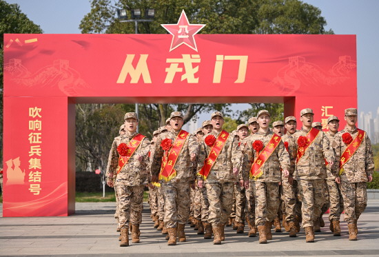 3月13日,安徽省合肥市举行2026年上半年新兵入伍欢送仪式。图为在渡江战役纪念馆解放广场,身着迷彩服、胸前佩戴大红花的新战士整齐列队,带着父老乡亲的嘱托,奔赴军营建功立业。