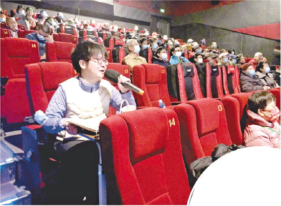 王玉婵是文化助盲行动的践行者之一。退休后的她,偶然得知心目影院在招募电影讲述志愿者,便毫不犹豫报了名。培训时,她跟着老师反复练习语气、打磨细节,把每一句描述都练到自然流畅,生怕因自己的疏忽,让视障观众错过任何一个画面。从2016年至今,她已义务为视障观众讲述了一百多场电影,每一场都倾尽心力。