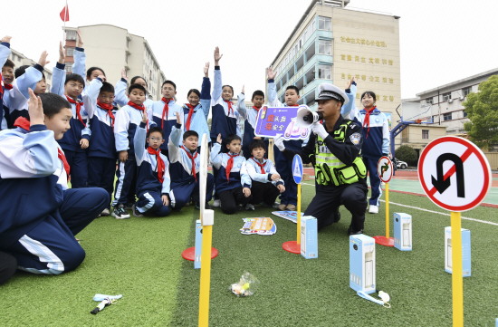 ▲ 在第31个全国中小学生安全教育日来临之际,江西省新余市公安局交管支队组织民警深入辖区校园,通过沉浸式体验、趣味答题套圈、乘车戴盔实操等方式,让学生们在寓教于乐中学习交通安全法律法规,筑牢交通安全防线。图为民警走进新余市明志小学为学生讲解交通安全知识。