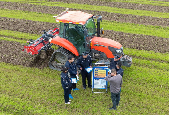 图① 3月31日,上海市公安局崇明分局竖新派出所民警来到辖区农场开展安全走访,并对企业员工进行防范电信网络诈骗宣传。图为民警向农场员工讲解反诈案例。