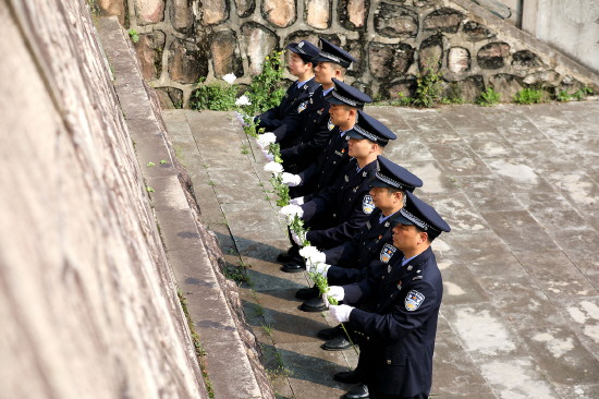▲ 4月1日,安徽省舒城县公安局高峰派出所组织民辅警来到新四军皖西革命纪念馆,开展“追思缅怀祭英烈 勇毅前行建新功”主题党日活动。图为民辅警向英烈敬献鲜花。 本报通讯员 王可海 摄