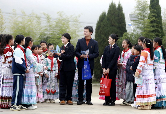 图① 3月19日,贵州省黔西市人民检察院联合黔西市司法局组织人员走进新仁苗族乡化竹小学,开展预防校园欺凌、网络安全等相关法律法规宣传。