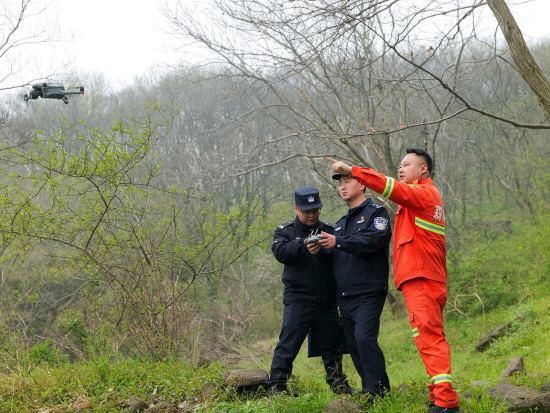 ▲ 清明将至,为严防因祭祀用火、踏青游玩引发山林火灾,连日来,江苏省盱眙县公安局森林派出所组织警力深入辖区古城林场,联合林场工作人员开展森林防火巡查,全力守护辖区生态资源与群众生命财产安全。图为民警操作无人机开展空中巡查。 本报记者 罗莎莎 本报通讯员 郑晨 摄