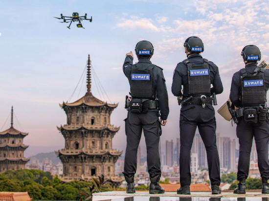 ▲ 近日,福建省泉州市公安局巡特警支队警航大队开展警用无人机空中巡查,以科技赋能守护古城平安。图为巡查现场。 本报记者 王莹 本报通讯员 陈亚明