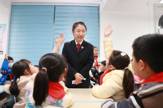 图③ 江苏省徐州市云龙区人民检察院近日组织该院“检爱·一朵云”法治副校长团队赴县辖区中小学,开展法治安全教育宣讲活动。检察干警通过以案释法,重点普及校园欺凌防治、未成年人保护等法律知识。图为检察人员通过互动问答方式向学生普及法律知识。