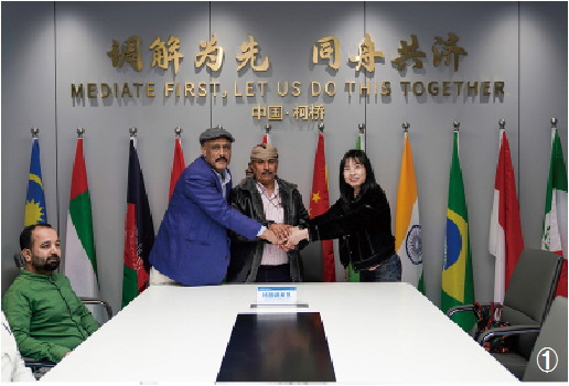 图① 4月2日,浙江省绍兴市柯桥区外籍调解员成功调解一起因出口商品延迟交付引起的合同纠纷。