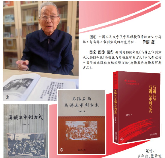 得知记者前来采访,今年99岁高龄的张希坡教授在家早早地作好了准备。在他的革命根据地法制史研究版图中,马锡五是绕不开的核心人物。马锡五曾任陕甘宁边区陇东专区专员兼高等法院陇东分庭庭长、最高人民法院西北分院院长、最高人民法院副院长。他扎根基层、贴近群众,创立了独具特色的审判方式,即“马锡五审判方式”。这一审判方式的核心是贯彻群众路线,强调深入基层、重视调查研究、实事求是;关键特点是就地审判、巡回审判,简化诉讼手续,审判与调解相结合,依靠群众解决纠纷。四十余年,三本著作的迭代,正是张希坡对马锡五与马锡五审判方式研究不断深化、不断完善的缩影。