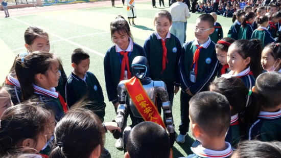 图为可克达拉市第一小学学生与机器人互动。 本报通讯员 许磊 摄