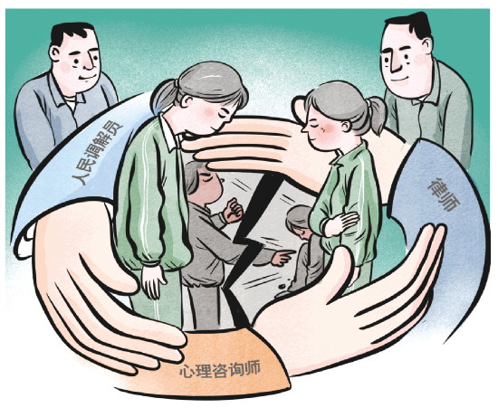 这起纠纷,表面是赔偿之争,内里却牵动两个孩子的成长与未来。它关乎钱,更关乎心;关乎眼下,更关乎长远。我和搭档刘绍明心里都清楚:单凭我们两张“婆婆嘴”,很难真正解决。于是,我们立即启动“三师协同”(人民调解员、律师、心理咨询师组成专项调解小组,协同解决矛盾纠纷)调解模式——由两名人民调解员牵头,律师董江山、心理咨询师任芳加入,迅速组成专项调解小组。三把“钥匙”同时转动,只为打开那扇紧锁的心门。