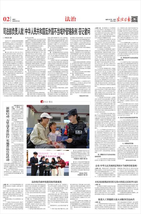 司法部负责人就《中华人民共和国反外国不当域外管辖条例》答记者问