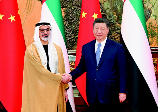 习近平指出,阿联酋是中国的全面战略伙伴,中方始终高度重视发展同阿联酋的关系。在双方共同努力下,中阿关系保持健康稳定发展,政治互信不断加深,务实合作稳步推进,人文交流丰富多彩。巩固和提升中阿关系是双方的坚定共识,符合两国人民期待。中方愿同阿方携手同行,打造更加稳固坚韧、富有活力的中阿全面战略伙伴关系。双方要继续在涉及彼此核心利益和重大关切问题上相互支持,保持高层交往,筑牢战略互信。加强发展战略对接,在能源、投资、贸易、科技等领域深挖潜力,深化互利合作。推动教育、民航、旅游等合作取得更大进展,密切人文交流,夯实民意基础。在联合国、金砖国家等多边平台增进协调合作,以中阿关系的稳定性应对国际和地区形势的不确定性,共同推动构建人类命运共同体。