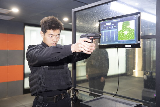 图② 上海市公安局静安分局将科技赋能作为提升实战能力的重要抓手,探索构建虚实结合的智慧训练体系,建立上海首个MR(混合现实)警务战术实训空间,运用AI智能编辑器生成各类MR场景课程。图为民警在战术实训空间智能靶场开展射击训练。