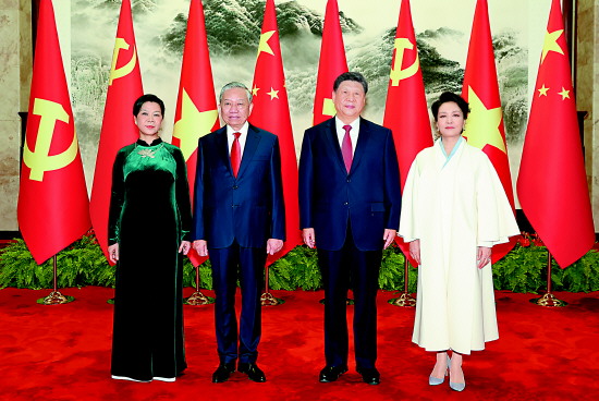 双方要同心协力,携手同行现代化道路。要加快发展战略对接,优先推进基础设施互联互通。要加强人工智能、半导体、物联网等新兴领域合作。中方欢迎更多越南优质产品进入中国市场。双方要继续加强旅游、文化、媒体、教育、卫生、体育等友好交流合作,促进两国人民相知相亲。我愿同你一道宣布启动2026-2027年“中越旅游合作年”。