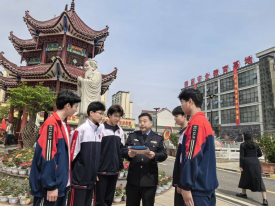 ▲ 4月15日,安徽省安庆市委国安办、市委政法委等部门为望江县文凯学校国家安全教育基地揭牌,并实地参观该校3000余平方米国家安全教育主题展厅。图为县司法局工作人员为学生讲解国家安全相关法律知识。
