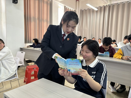 图② 河南省许昌市建安区人民检察院未检干警近日走进校园开展“读书与学法”法治宣传教育活动,提升孩子们的学法、守法意识。图为干警给学生讲述法治故事、发放普法教材。