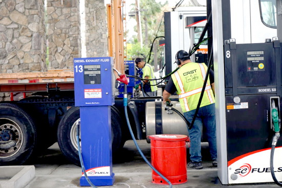 美国汽车协会发布的最新数据显示,全美普通汽油平均价格涨幅创近4年来新高。图为3月31日,在美国加利福尼亚州蒙罗维亚市的一座加油站,司机为卡车加油。 新华社发