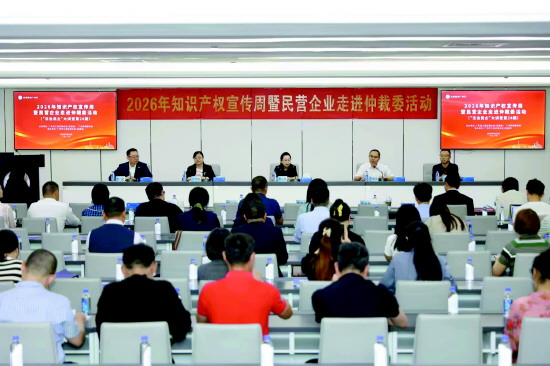 图为2026年4月16日,由广州仲裁委员会与广东省工商联(总商会)联合主办、广州市工商联(总商会)协办的2026年知识产权宣传周暨民营企业走进仲裁委活动现场。