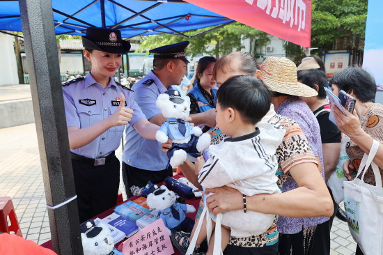 图① 海南省公安厅反走私和海岸管理总队第七支队近日组织民警在儋州市新时代文明实践中心广场开展反走私普法宣传。民警通过发放普法手册、现场答疑解惑、以案释法等多种形式,向市民普及反走私相关法律法规。图为民警向群众讲解反走私法律知识。