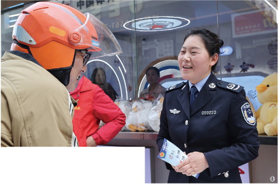 图① 3月31日,安徽省淮北市相山区司法局相南司法所工作人员在步行街工会驿站为快递员和外卖员宣传法律知识,现场解答相关法律问题。 本报通讯员 张锋 摄