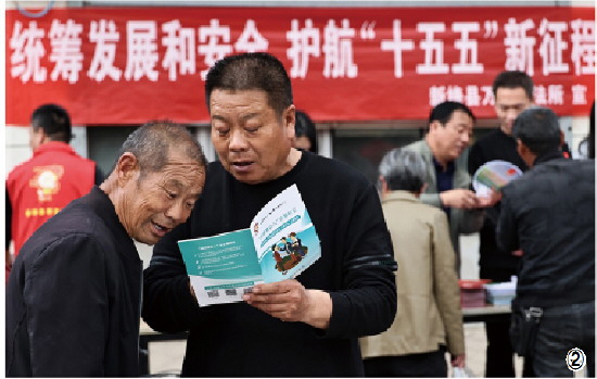图② 4月14日,山西省新绛县司法局在万安镇万安村农贸集市“摆摊”,开展送法下乡活动,解答群众关心的法律问题。