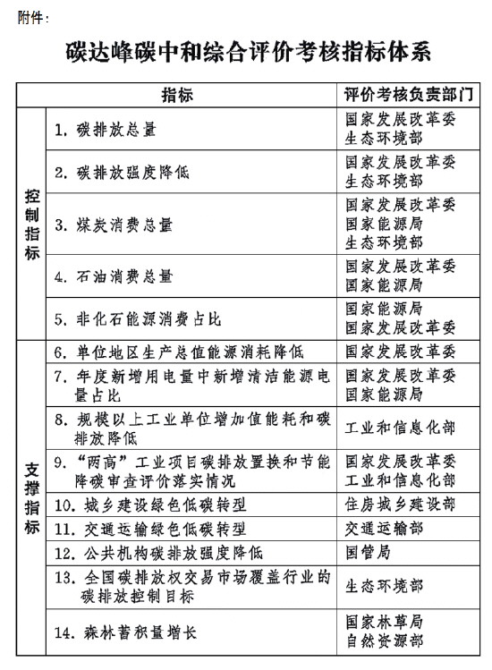 《碳达峰碳中和综合评价考核办法》全文如下。