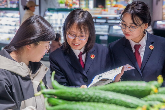 近日,山东省滕州市组织公安、检察院、市场监管等部门联合开展宣传活动,引导市民增强知识产权保护意识。图为滕州市人民检察院工作人员向市民普及商标权知识。