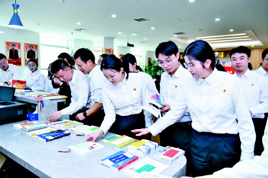 ▲ 北京市朝阳区人民法院、北京市密云区人民法院近日联合举办青年读书沙龙,两院青年干警共沐法韵书香,共护法治初心。图为法院干警在挑选图书。 本报记者 张雪泓 本报通讯员 曹璐 摄