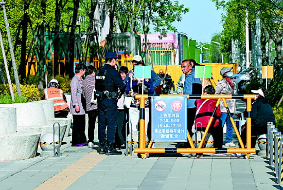 雄安新区公安局勤务大队队员向学生家长宣讲安全防范注意事项。