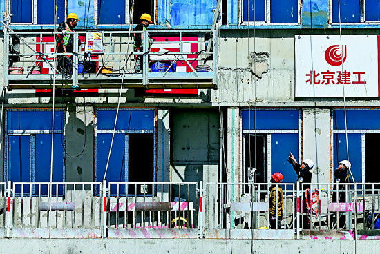 容城县公安局大河派出所民警牛一卓、肖天华走进北京交通大学雄安校区项目工地,对高空作业人员进行安全提示。